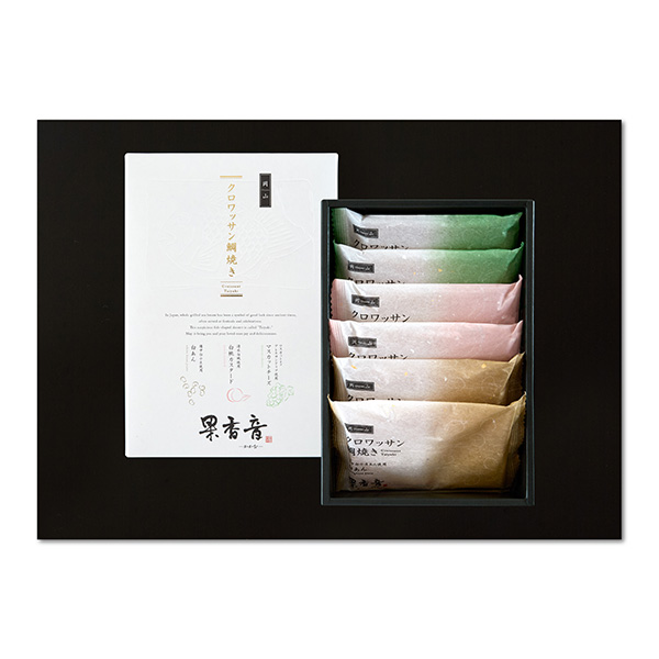 ●希少な備中白小豆あんを使用した、あっさりと上品な白あん。十清水白桃と蒜山ジャージー牛乳で作られた上質な香り漂う、白桃カスタードクリーム。マスカット・オブ・アレキサンドリアにチーズを加えて、爽やかな酸味を感じられるレアチーズケーキ風のマスカットチーズ。岡山が誇る素材を使用した3種類をセットにしました。手作業で27層に折り込まれた生地は贅沢なほどにバターの香り高く、それでいて甘さ控えめです。